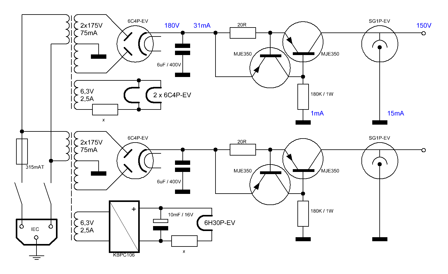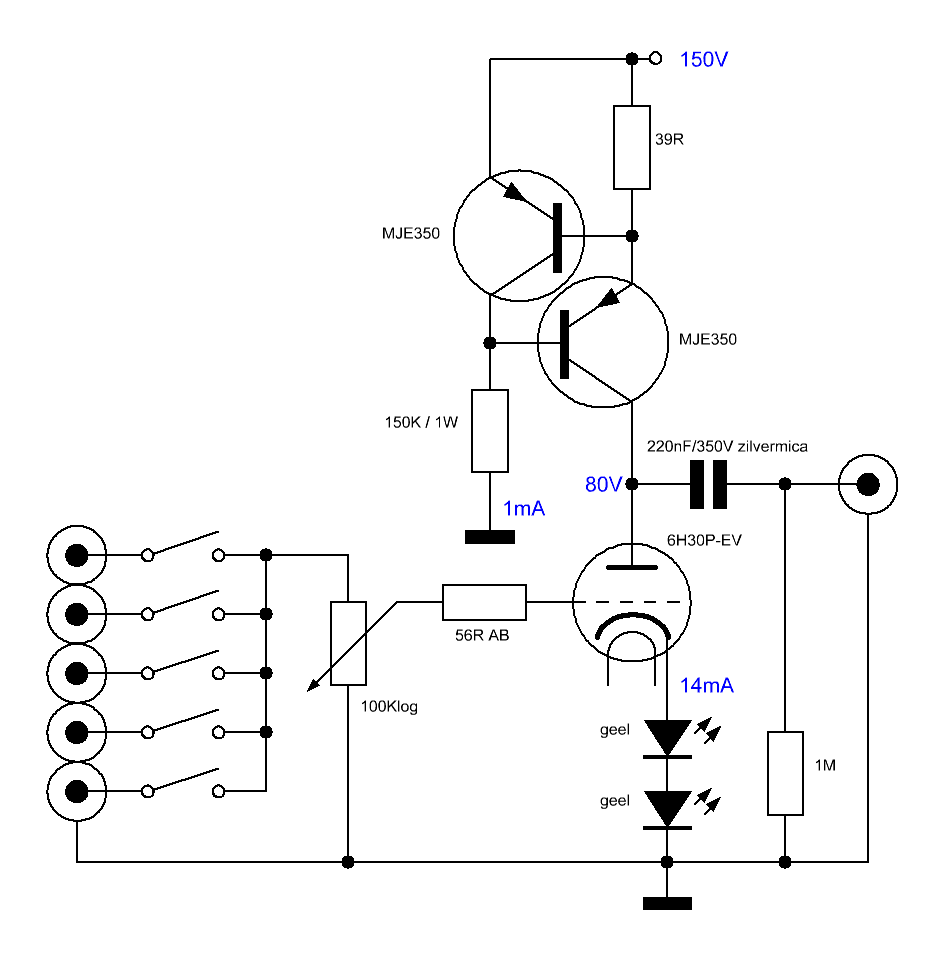 gelijkrichterlampen nodig, beide kanalen krijgen hun eigen lamp.